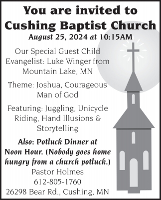 Aug 25, 2024. Cushing Baptist Church Church Ads from Dairyland Peach