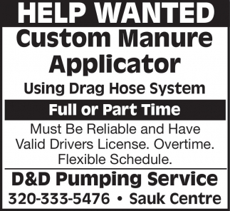 Oct 13, 2024. D&D Pumping Service Jobs Ads from Dairyland Peach