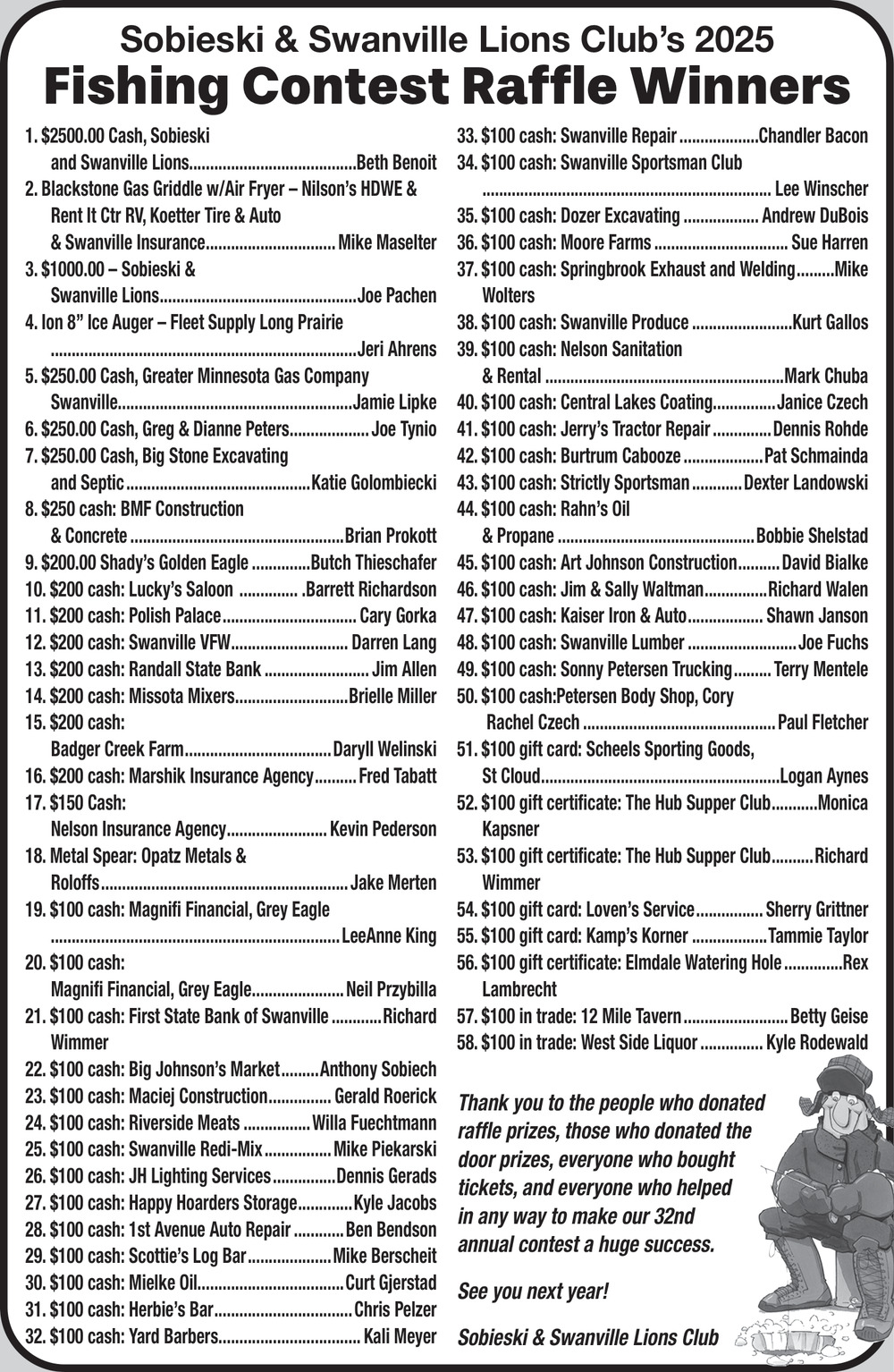 Mar 02, 2025. Sobieski & Swanville Lions Club Events Ads from Morrison County Record