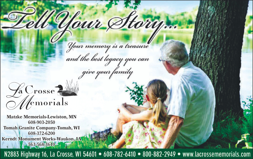 Jul 29, 2025. La Crosse Memorials Inc Funeral Ads from Caledonia Argus