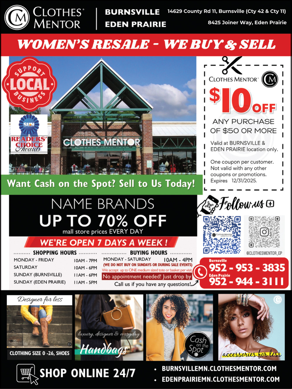 Aug 08, 2025. Clothes Mentor - Burnsville Clothing Ads from Sun Thisweek