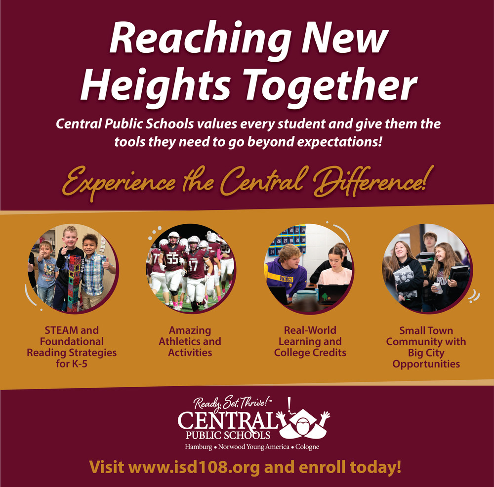 Aug 14, 2025. ISD 108 Central Public Schools Education Ads from Sun Patriot