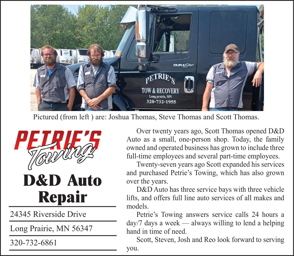 Ads for Petrie's Towing - D&D Auto Repair in Long Prairie, MN