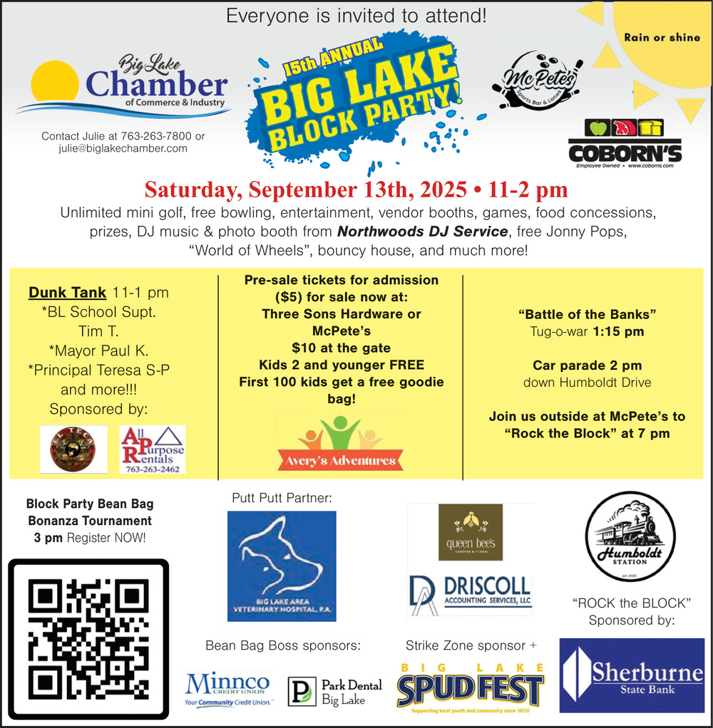 Sep 04, 2025. Big Lake Chamber of Commerce & Industry Events Ads from Monticello Times