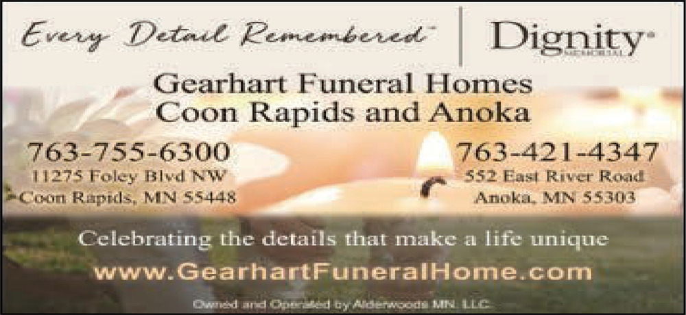 Ads for Gearhart Funeral Homes in Anoka, MN