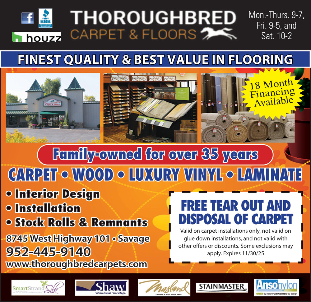 952-445-91408745 W Hwy 101 Frontage RdSavage, MN 55378(Thoroughbred Carpet & Floors)