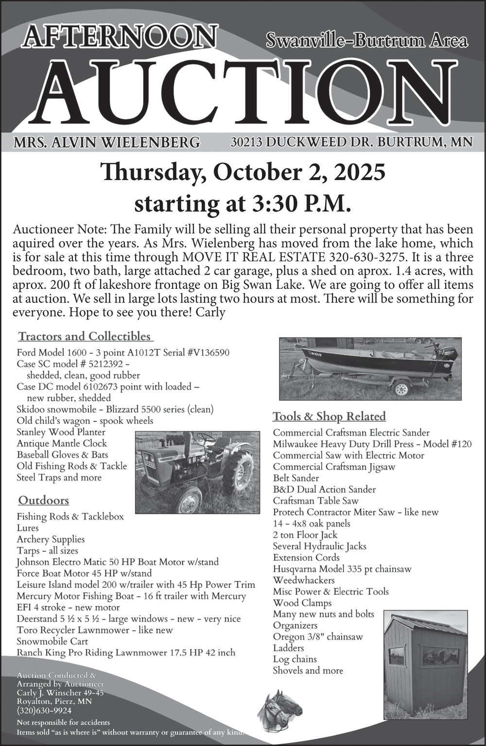 Sep 28, 2025. Winscher Auction Company Auction Ads from Dairyland Peach