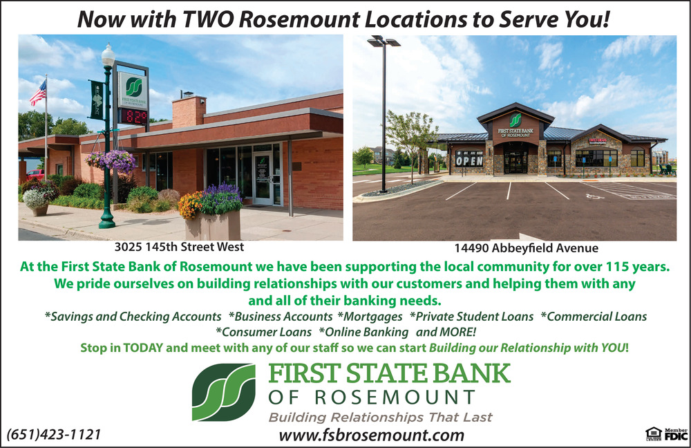 651-423-11213025 145th St WRosemount, MN 55068(First State Bank of Rosemount)