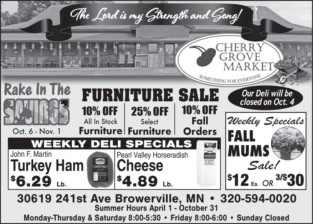 Oct 05, 2025. Cherry Grove Market Grocery Store / Market Ads from Morrison County Record