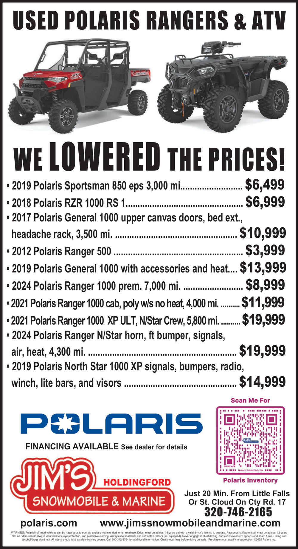 Oct 05, 2025. Jim's Snowmobile & Marine Inc Sporting Goods Ads from Morrison County Record