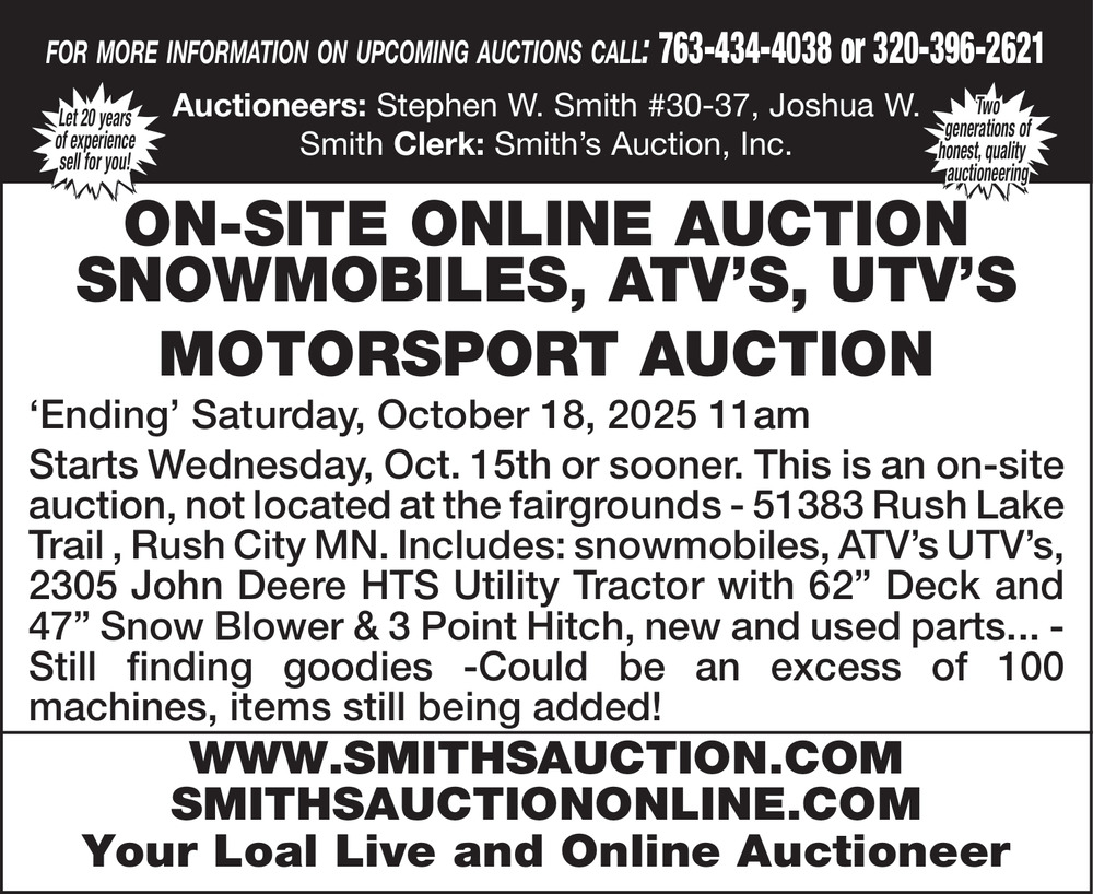 Oct 12, 2025. Smith Auction Auction Ads from County News Review