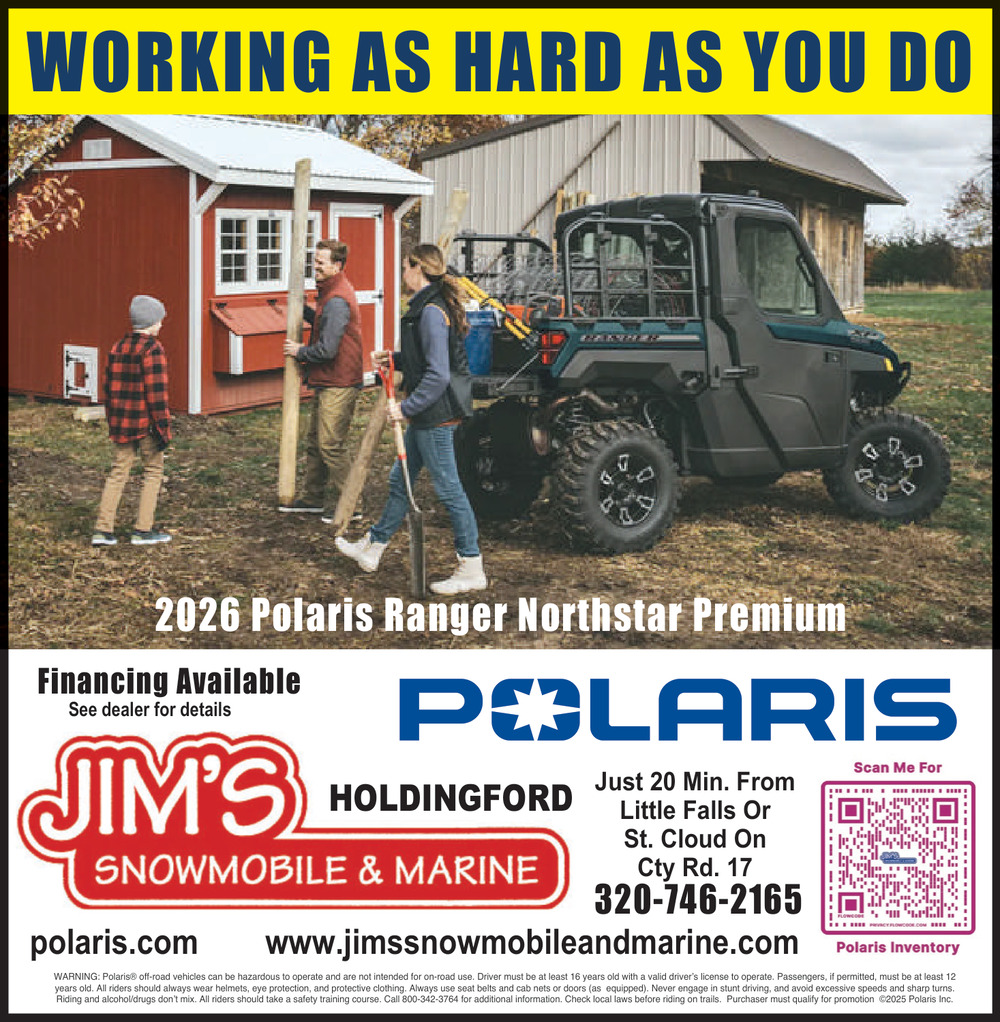 Oct 12, 2025. Jim's Snowmobile & Marine Inc Sporting Goods Ads from Morrison County Record