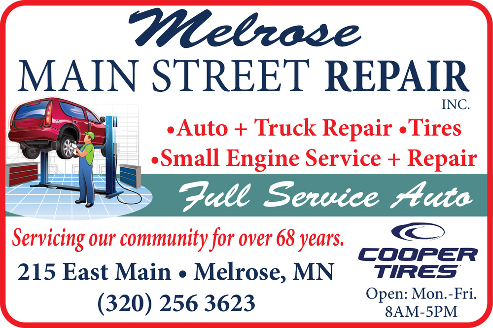 Oct 12, 2025. Melrose Main Street Repair Auto Services Ads from Dairyland Peach