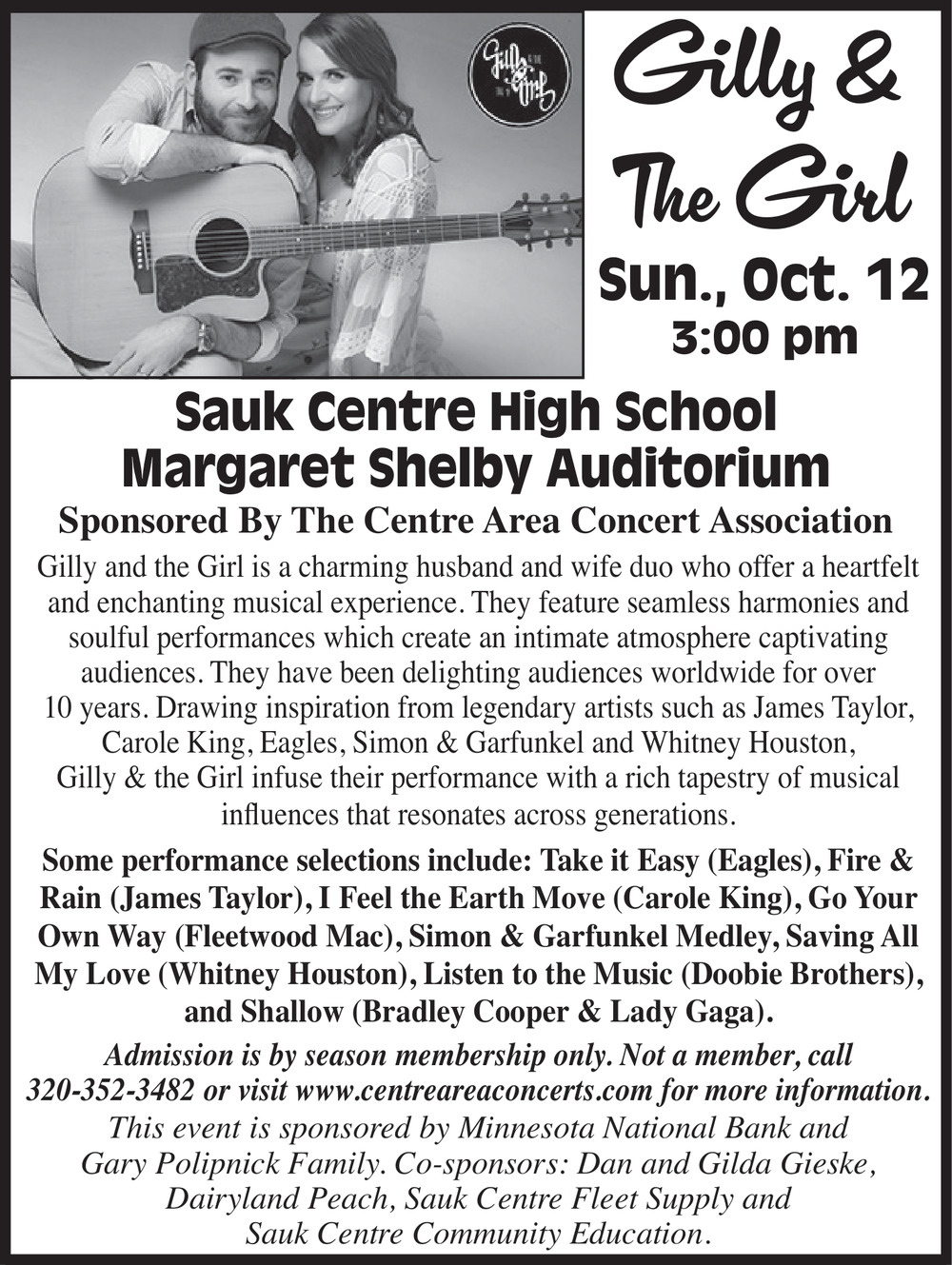 Ads for Centre Area Concerts in Sauk Centre, MN