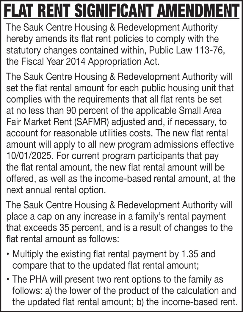Oct 11, 2025. The Sauk Centre Housing & Redevelopment Authority Government Ads from Dairyland Peach