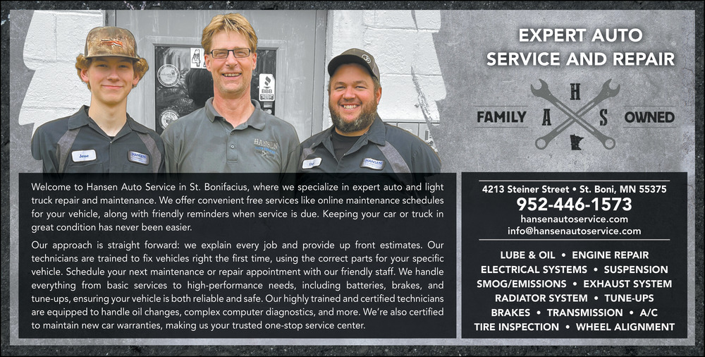 Ads for Hansen Auto Service in Saint Bonifacius, MN