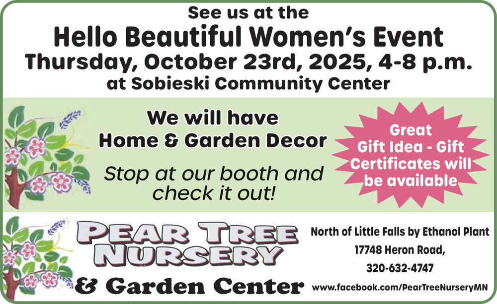 Oct 19, 2025. Pear Tree Nursery Home & Garden Ads from Morrison County Record
