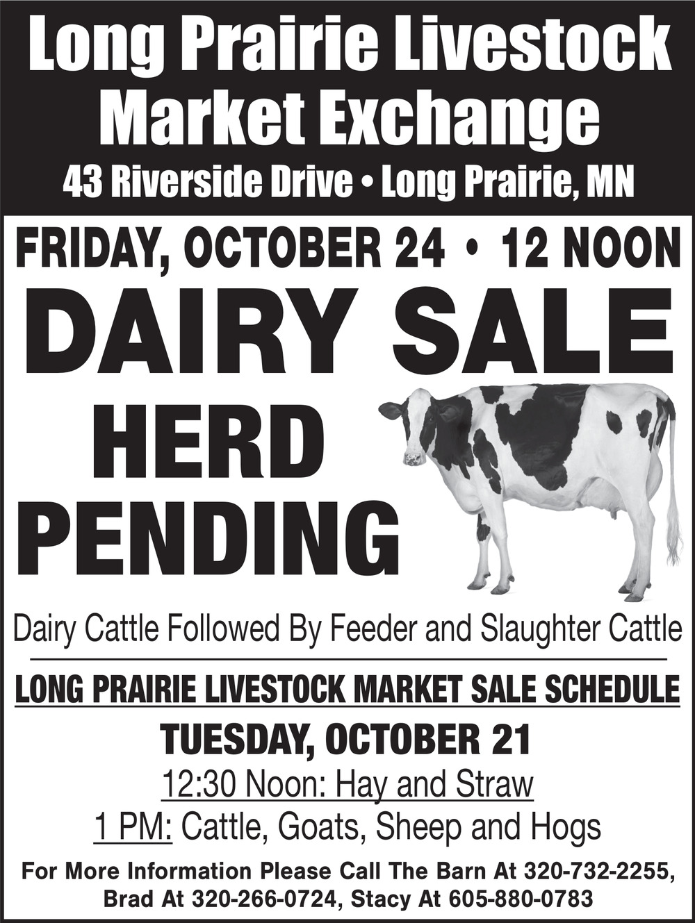 Oct 19, 2025. Long Prairie Livestock Auction Market Exchange Livestock Ads from Morrison County Record