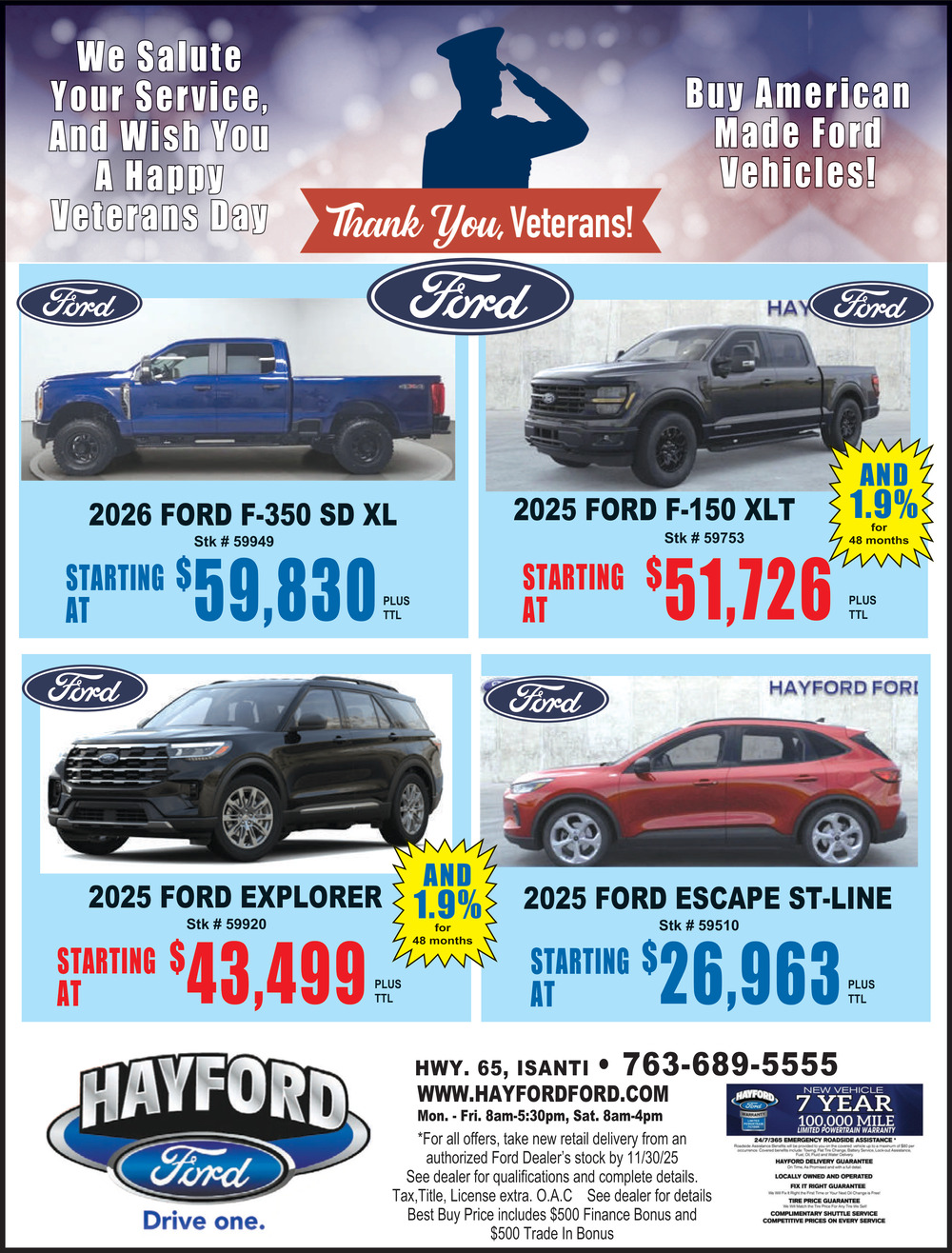 Oct 26, 2025. Hayford Ford Auto Dealers Ads from County News Review