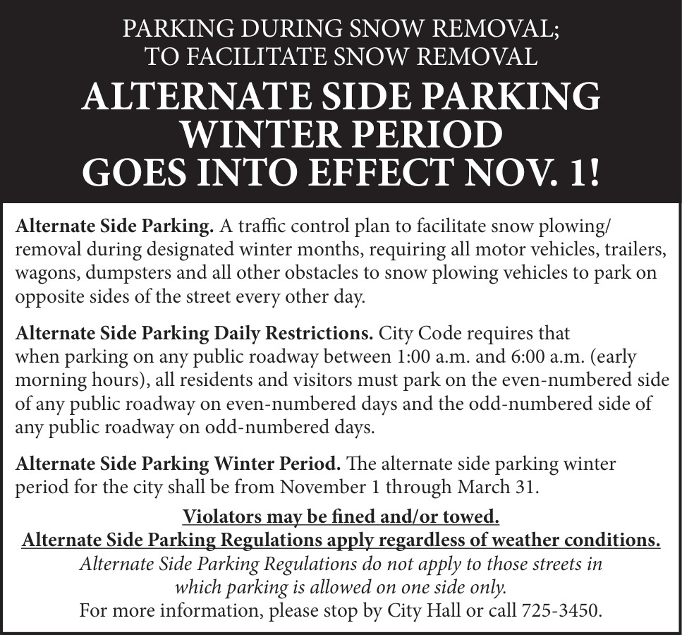 Alternate Side Parking Winter Period Goes Into Effect November 1!