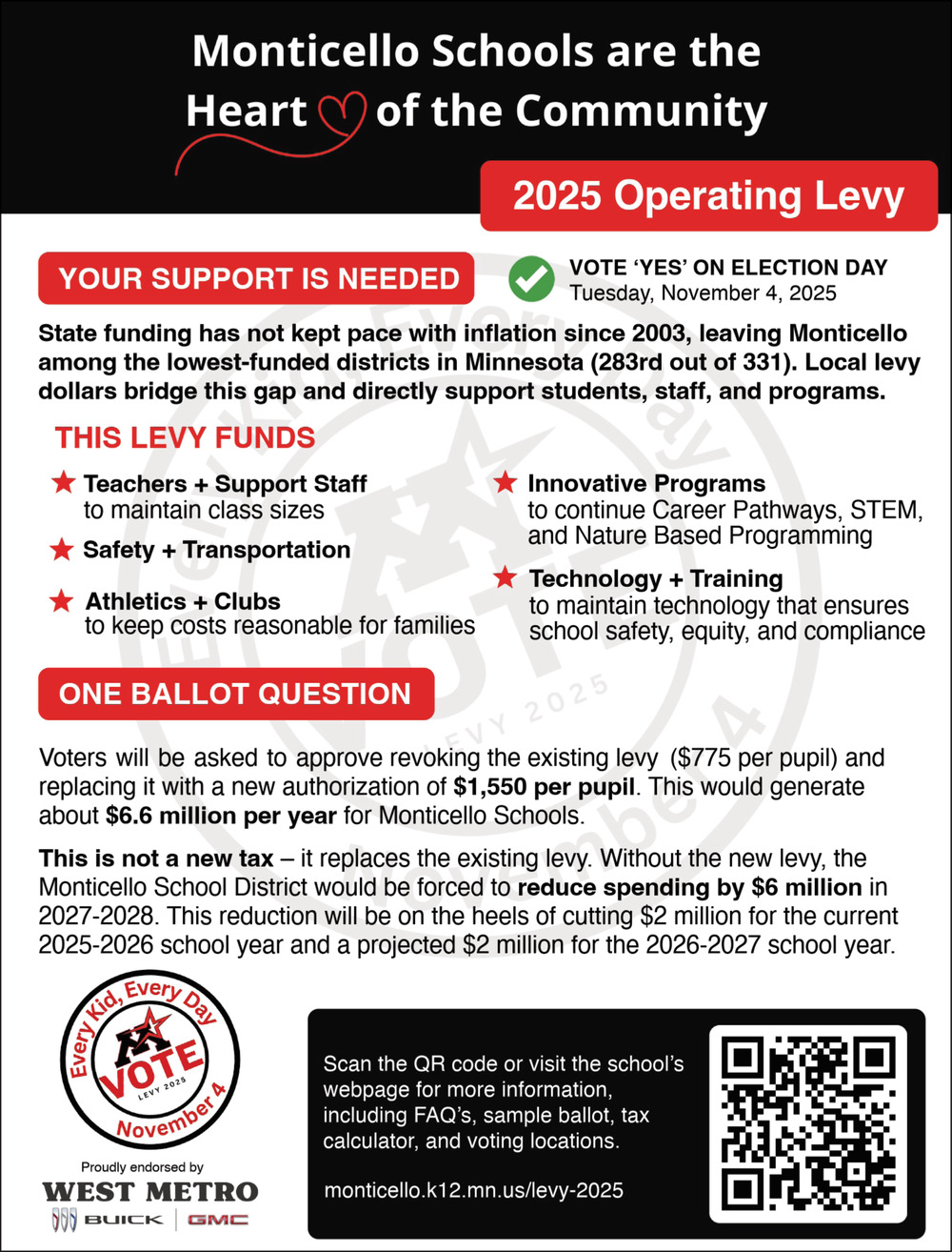 Oct 29, 2025. Monticello School District Education Ads from Monticello Times