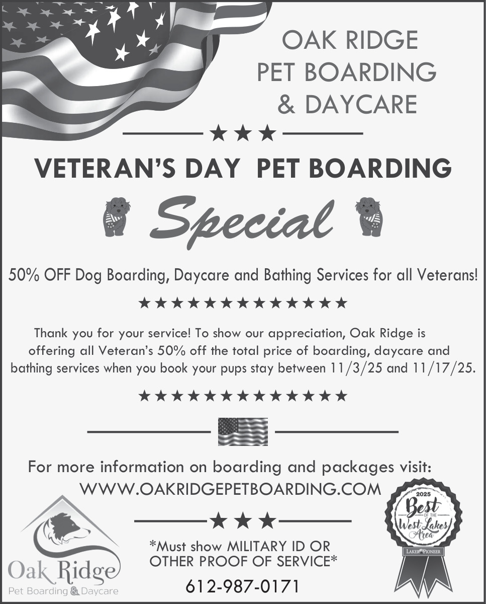Oct 31, 2025. Oak Ridge Pet Boarding Pets Ads from Laker & Pioneer