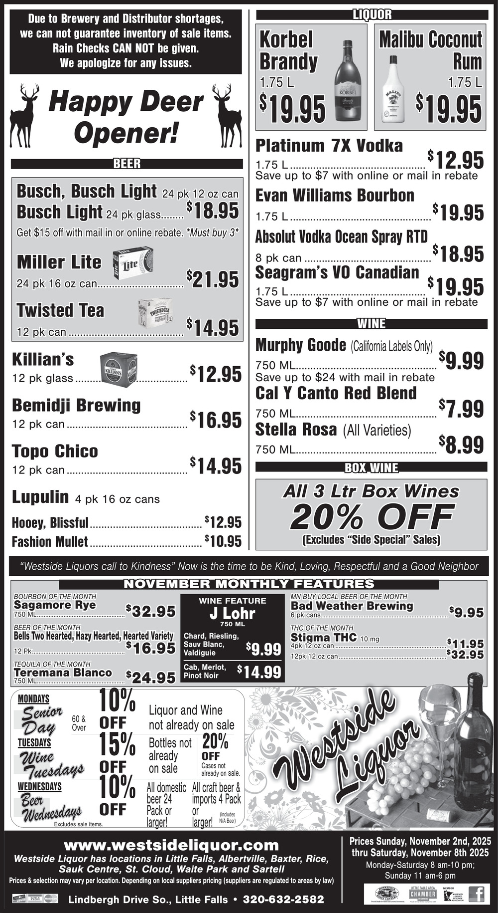 Nov 02, 2025. Westside Liquor Liquor Ads from Morrison County Record