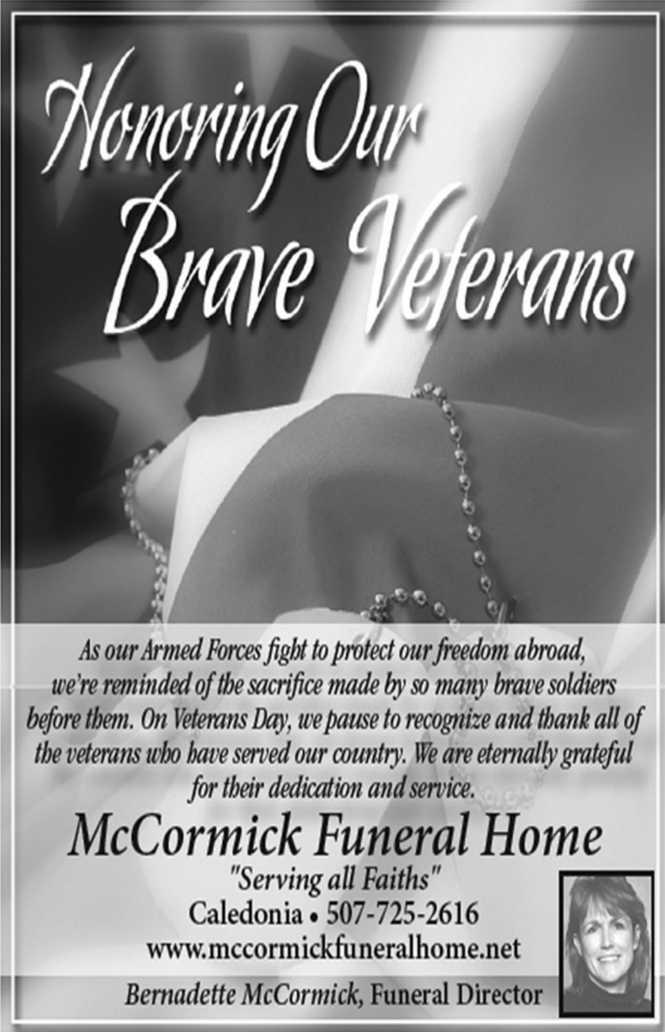 Ads for McCormick Funeral Home in Caledonia, MN