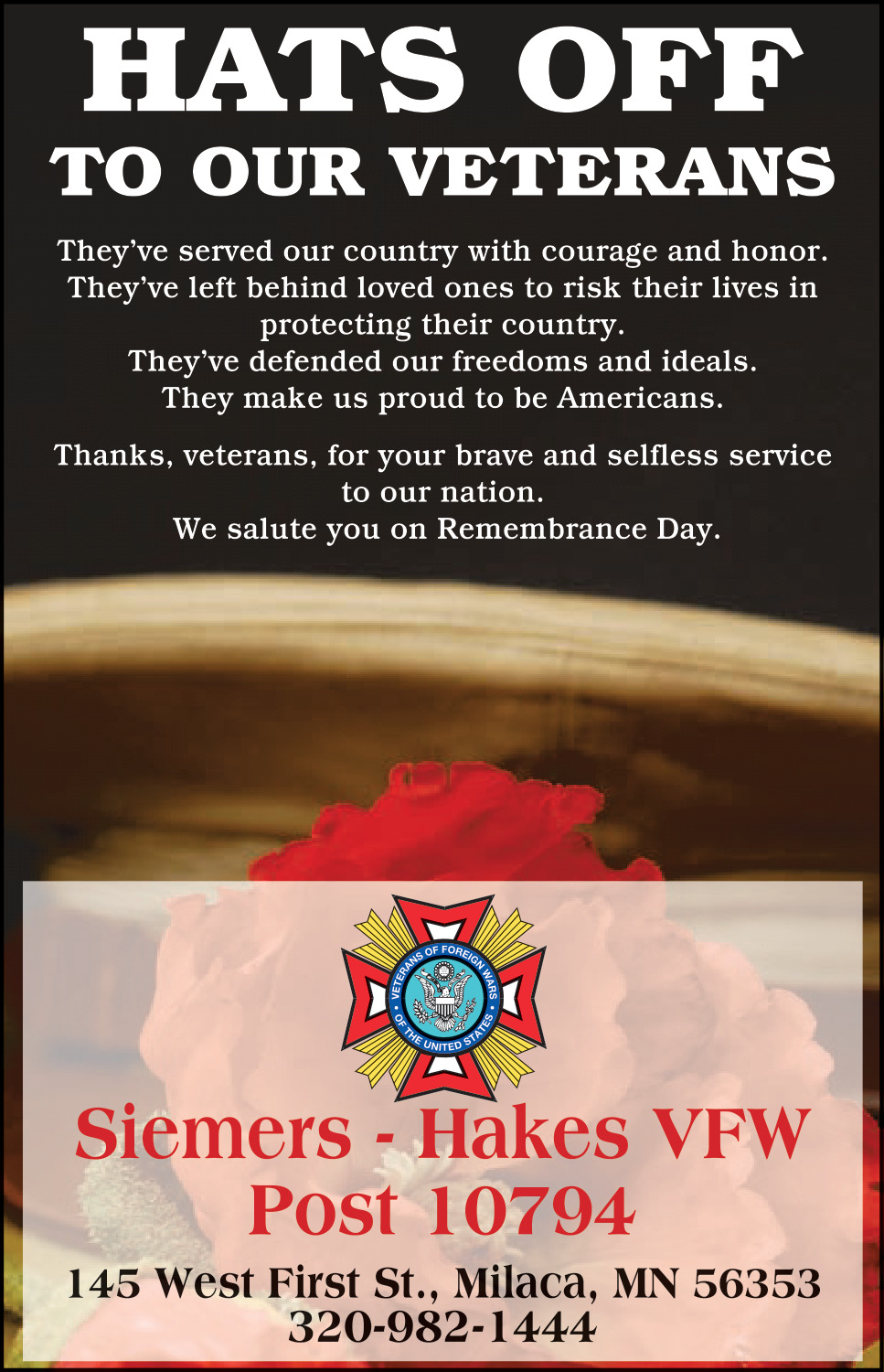 Ads for Siemers - Hakes VFW Post 10794 in Milaca, MN
