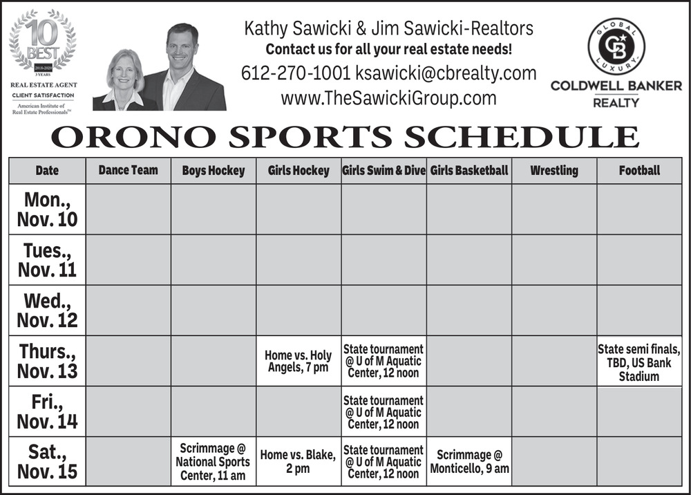 Orono Sports Schedule
