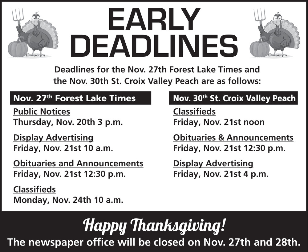 Nov 09, 2025. Forest Lake Times Print / Advertising Ads from Forest Lake Times