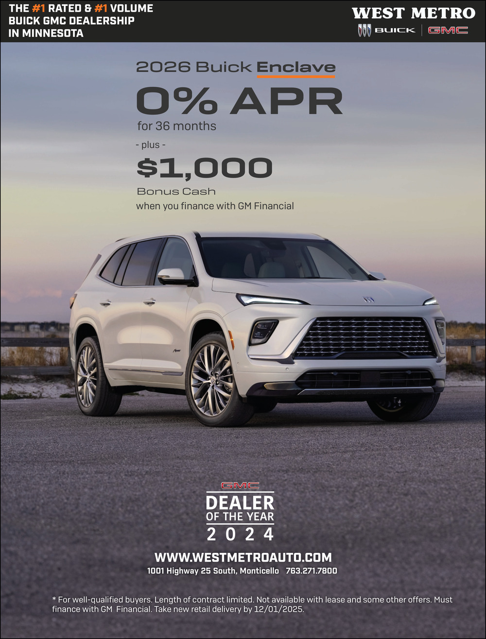 Nov 13, 2025. West Metro Buick GMC Auto Dealers Ads from Monticello Times