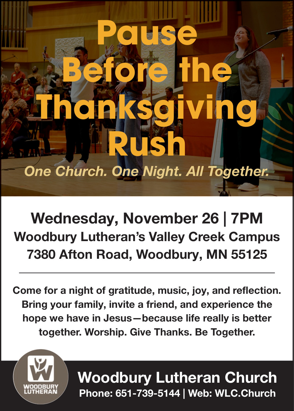 Nov 14, 2025. Woodbury Lutheran Church Church Ads from Stillwater Gazette