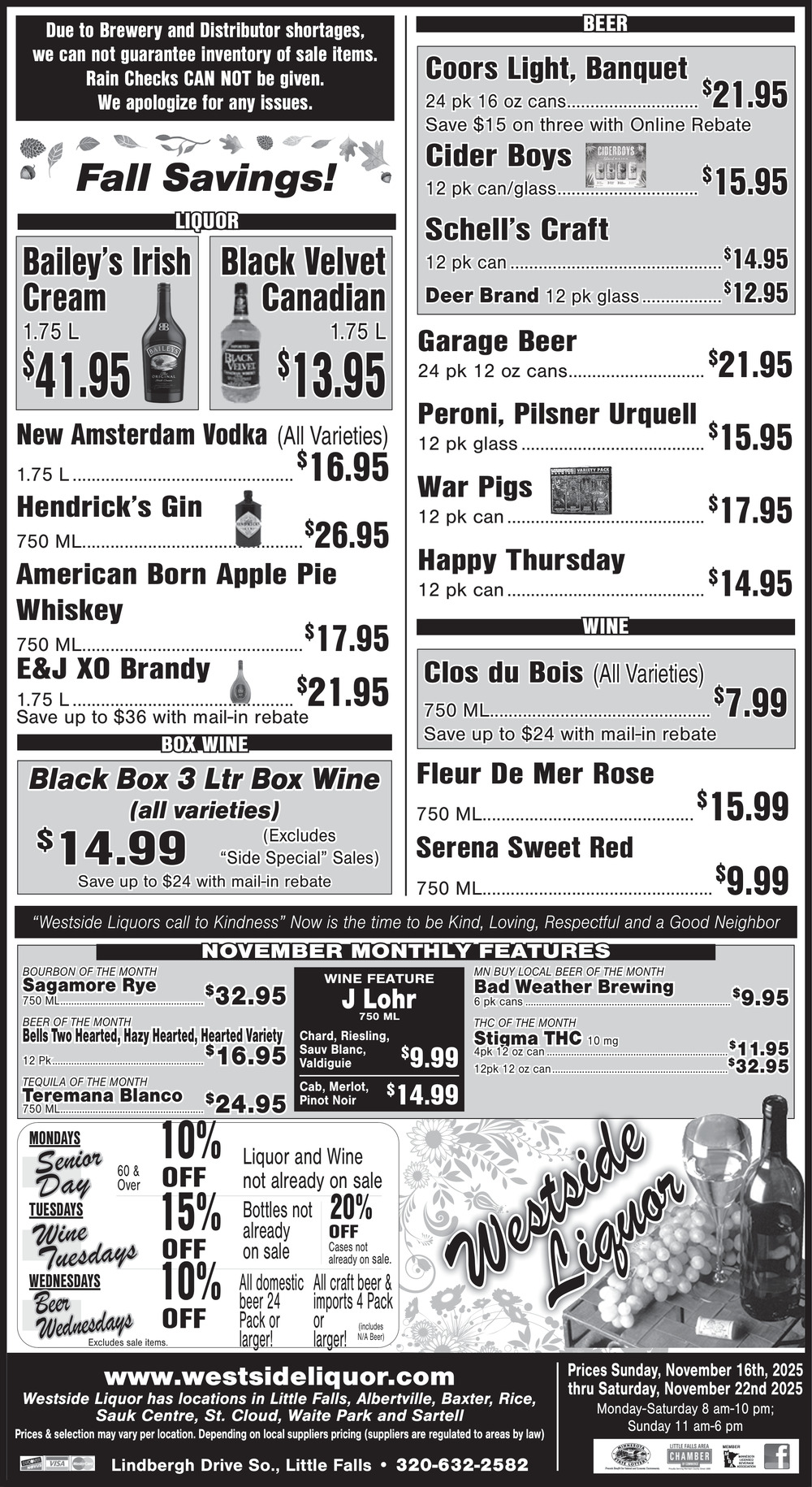 Nov 16, 2025. Westside Liquor Liquor Ads from Morrison County Record