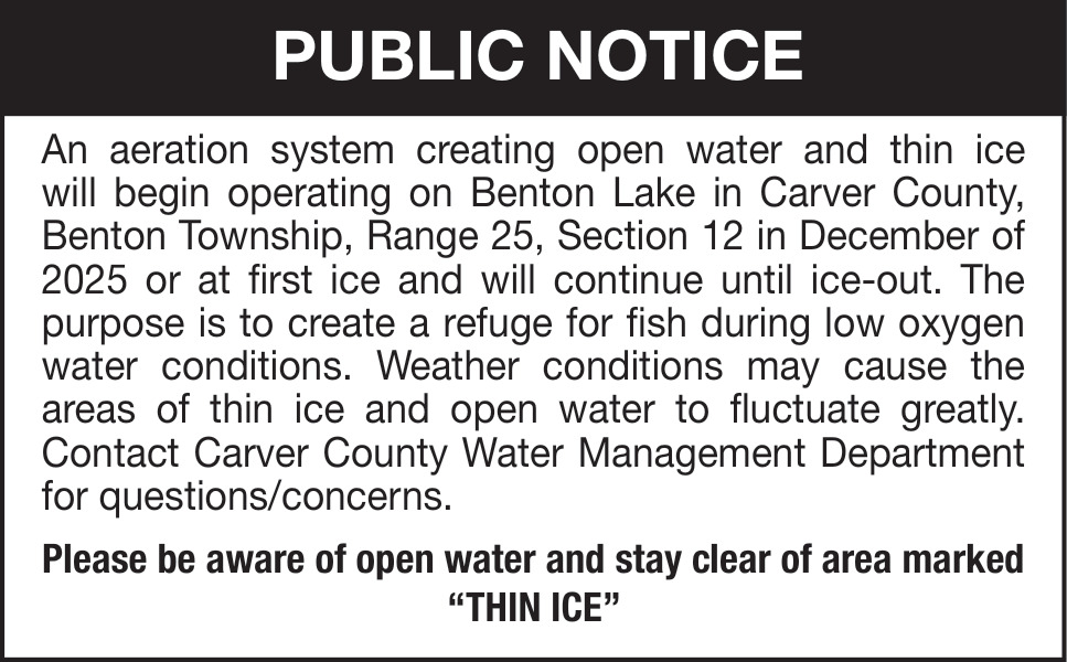 Nov 20, 2025. Carver County Water Management Department Government Ads from Sun Patriot