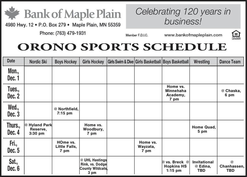 Nov 29, 2025. Bank of Maple Plain Banking Ads from Laker & Pioneer