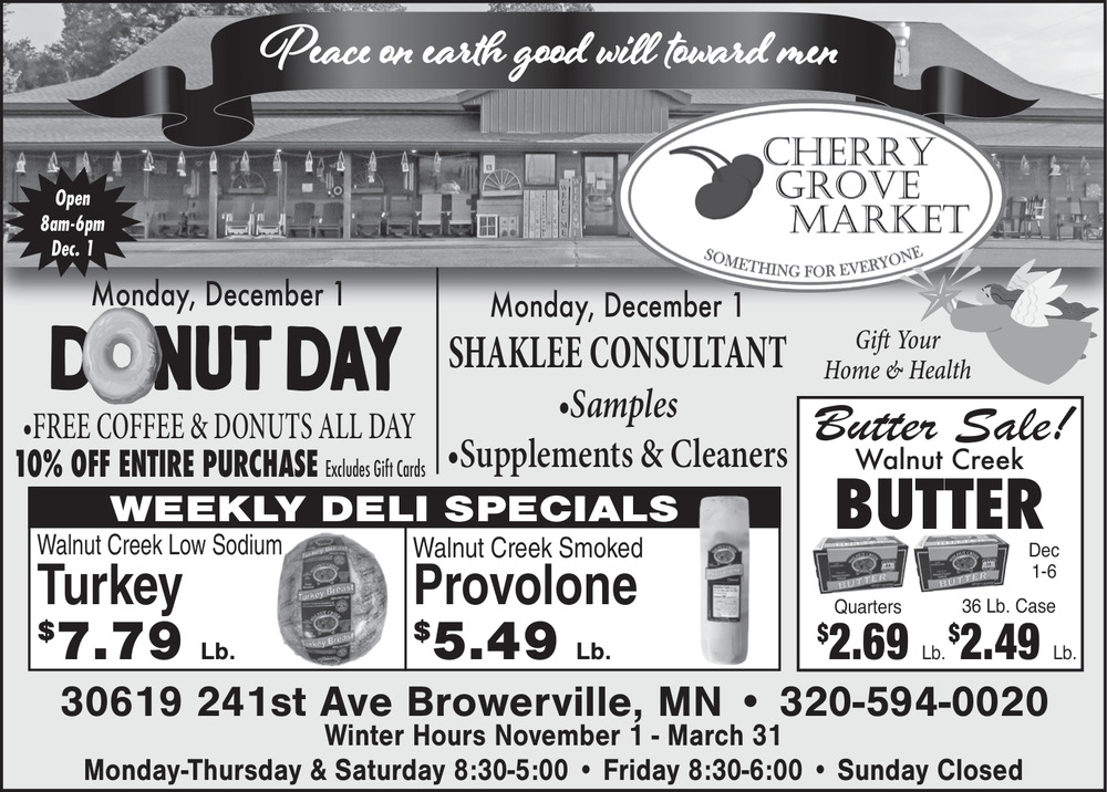 Nov 30, 2025. Cherry Grove Market Grocery Store / Market Ads from Morrison County Record