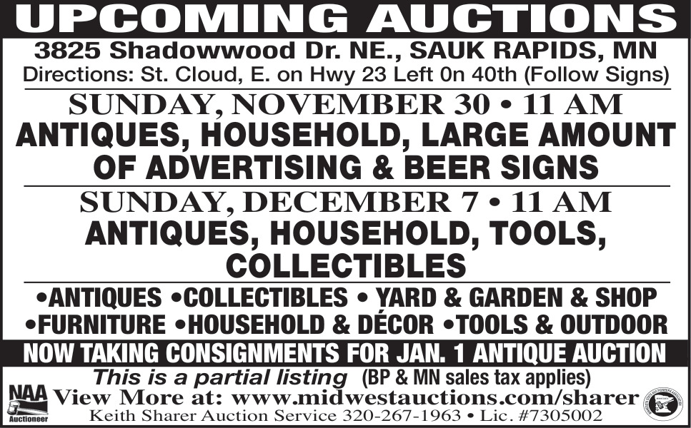 Nov 30, 2025. Midwest Auctions Auction Ads from Morrison County Record