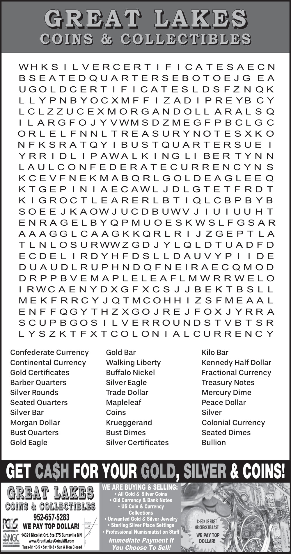 Ads for Great Lakes Coins & Collectibles in Burnsville, MN
