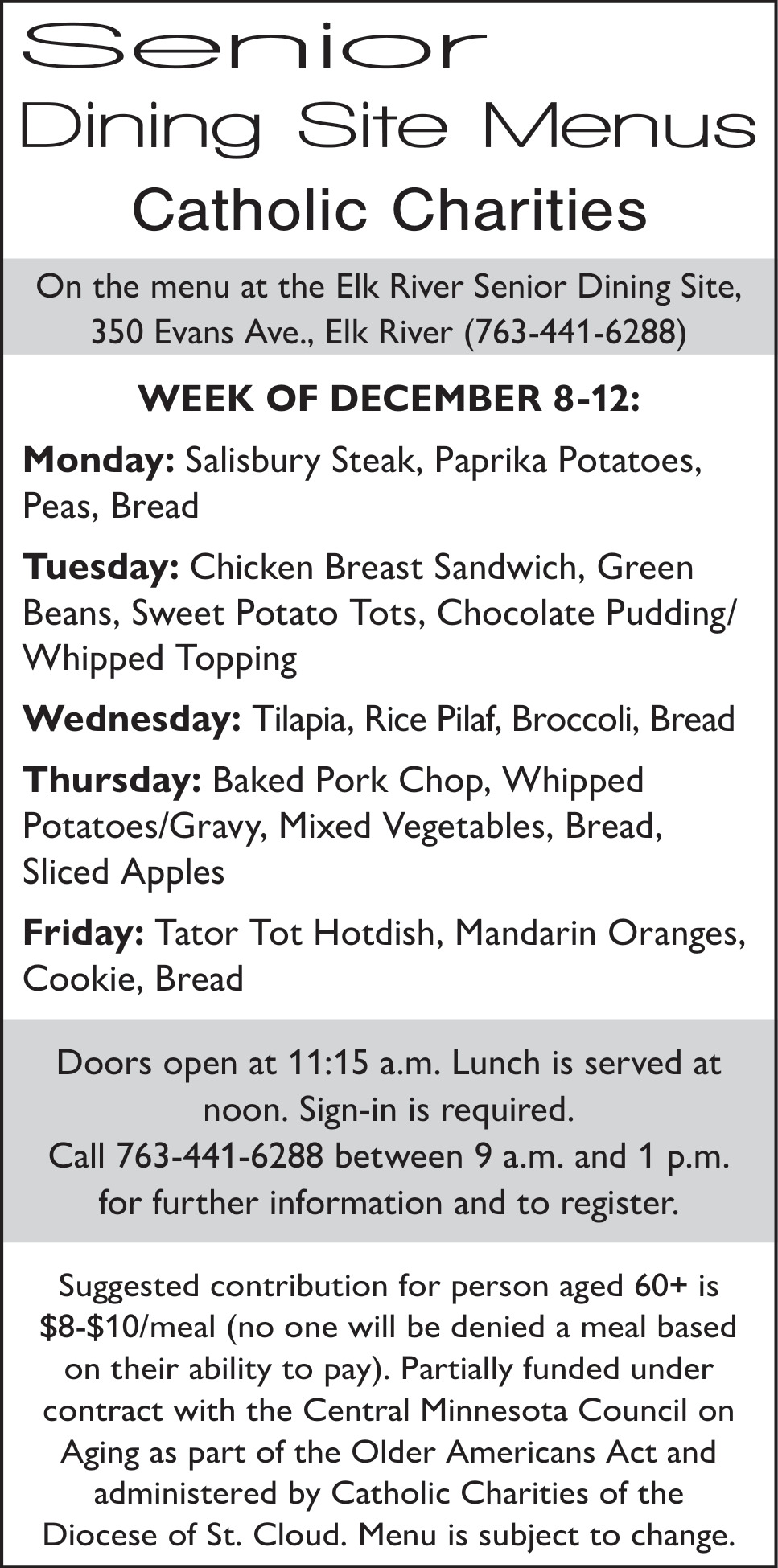 Dec 06, 2025. Senior Dining Site Menu Events Ads from Star News