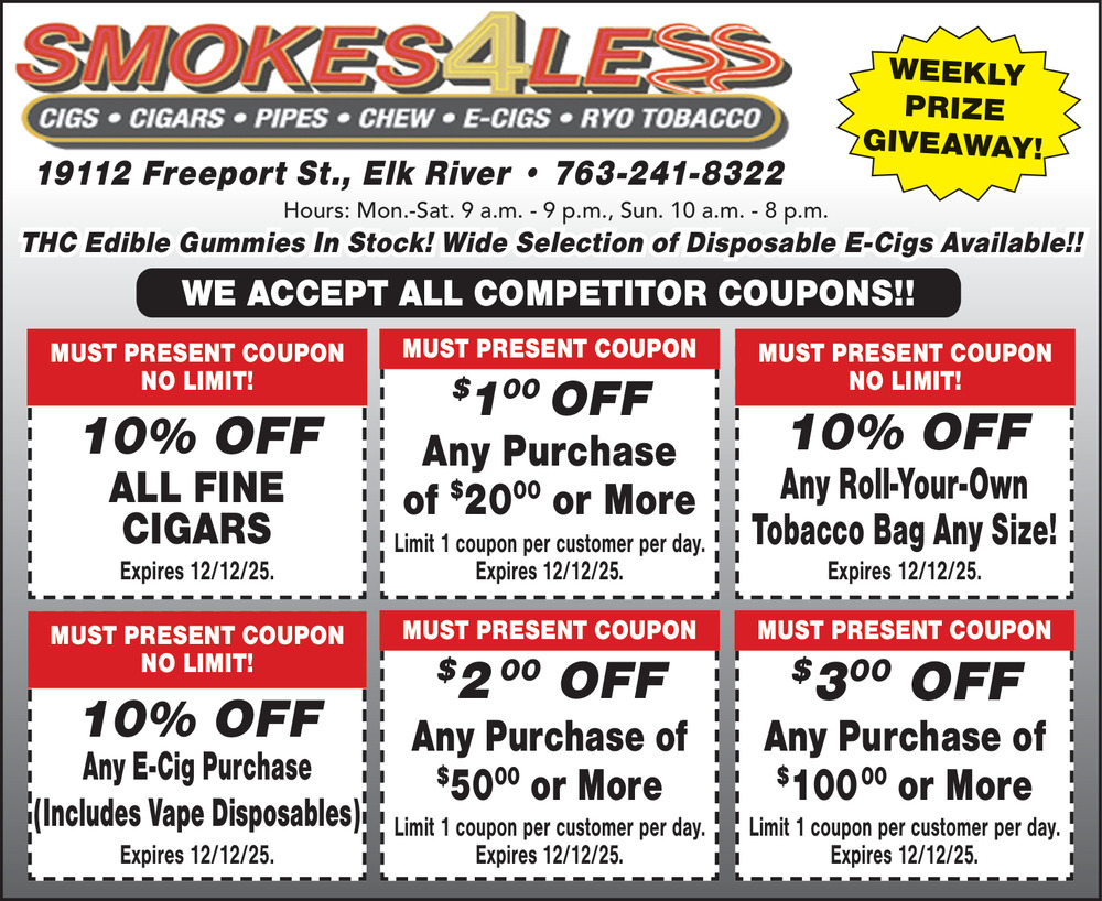Ads for Smokes 4 Less in Elk River, MN