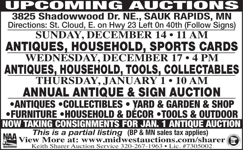 Dec 14, 2025. Midwest Auctions Auction Ads from Morrison County Record