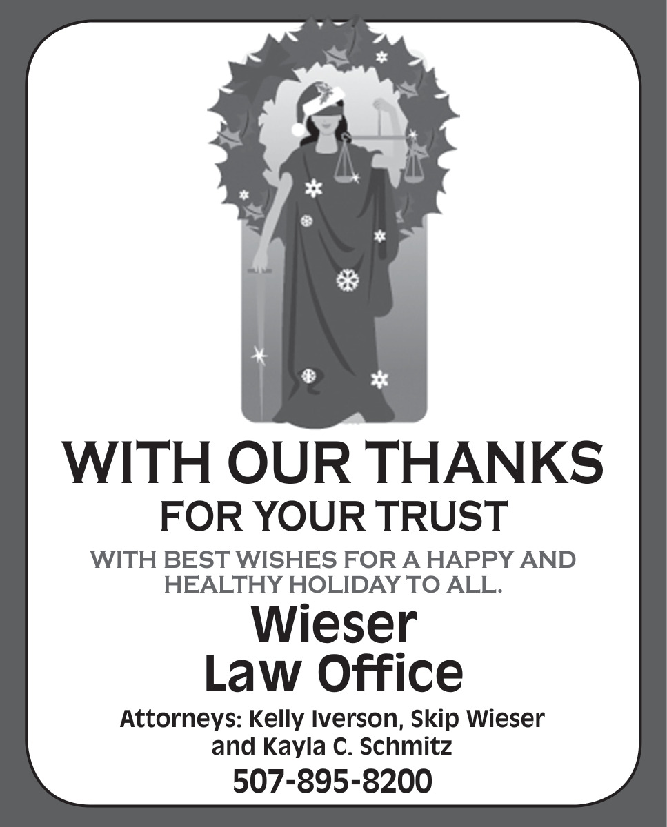 Dec 17, 2025. Wieser Law Office Attorneys Ads from Caledonia Argus