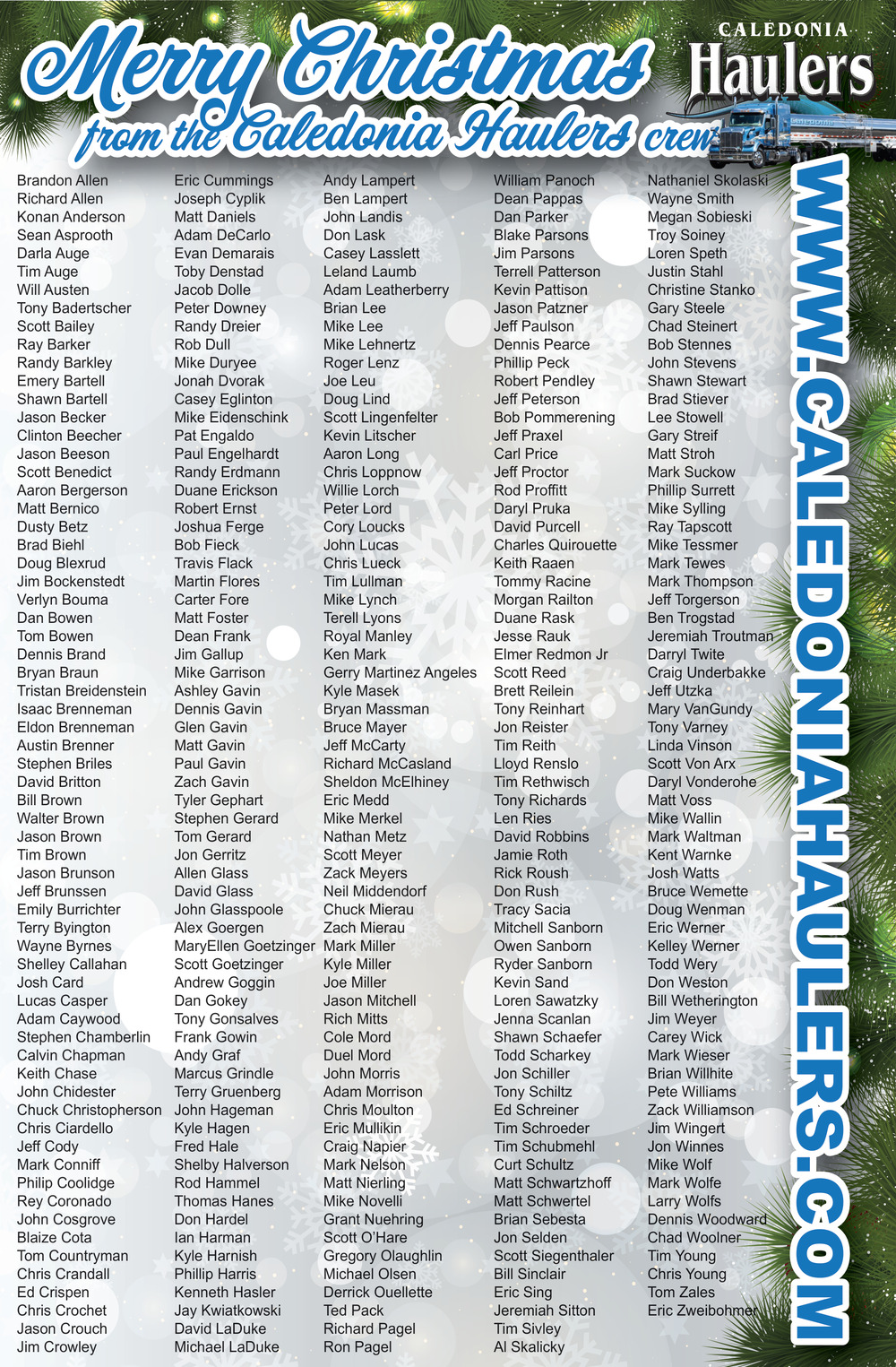 Dec 17, 2025. Caledonia Haulers Transportation Ads from Caledonia Argus