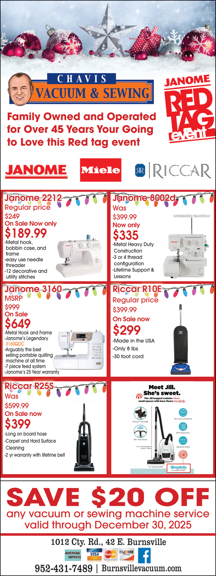 Ads for Chavis Vacuum & Sewing in Burnsville, MN
