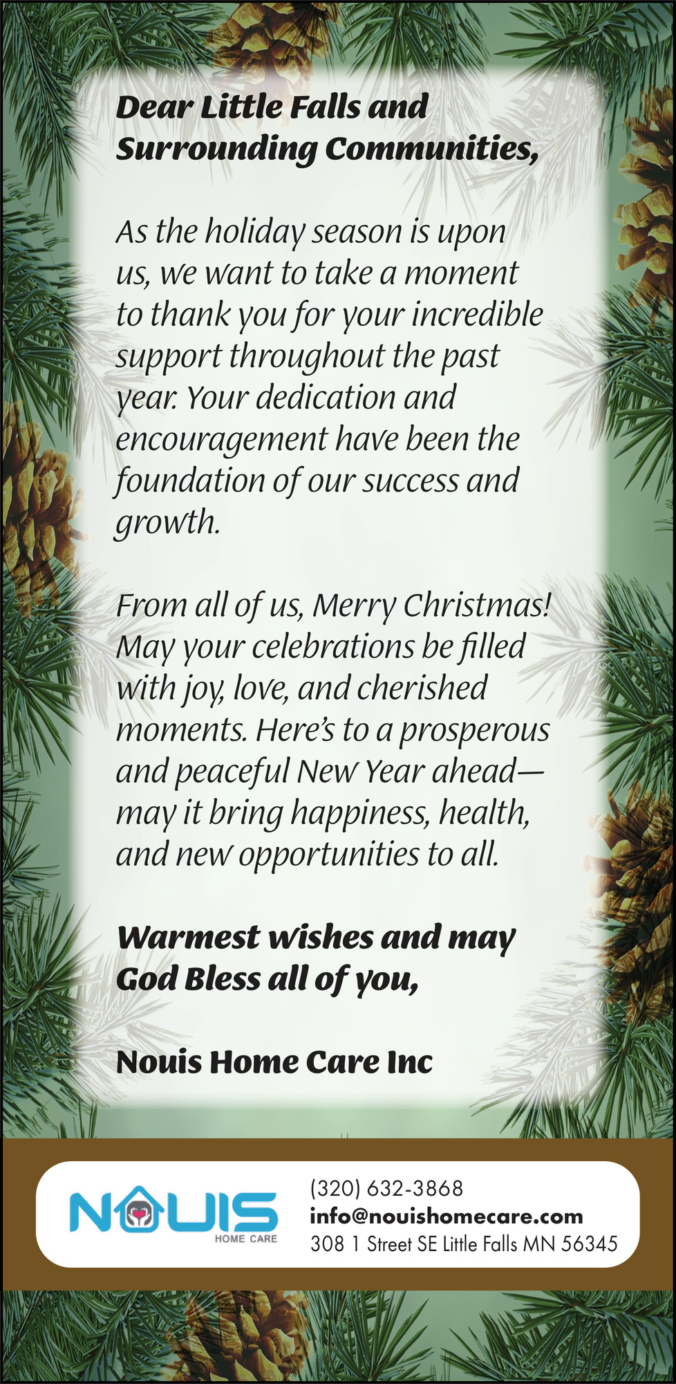 Dec 21, 2025. Nouis Home Care Senior Living Ads from Morrison County Record