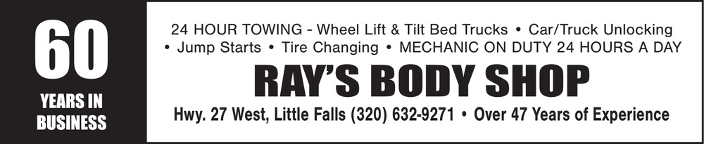 Jan 04, 2026. Ray's Body Shop Auto Services Ads from Morrison County Record