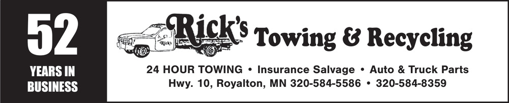 Ads for Rick's Towing & Recycling in Royalton, MN