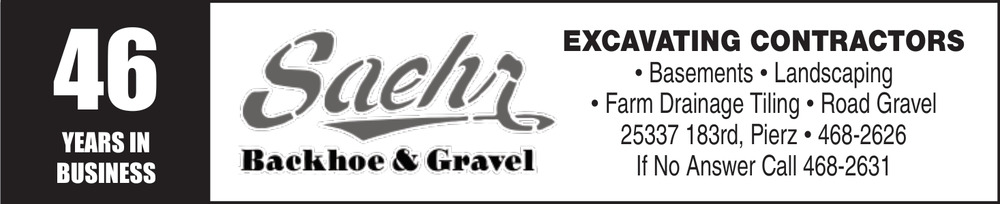 Jan 04, 2026. Saehr Backhoe & Gravel, Inc Excavating Ads from Morrison County Record