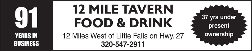 Jan 04, 2026. 12 Mile Tavern Restaurants Ads from Morrison County Record